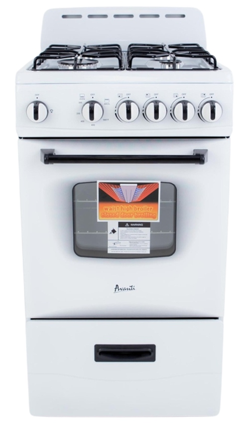 Save kitchen space with this compact, white range from Avanti. The perfect compact gas range for the office, studio apartment, RV, tiny home, condo, vacation home, or anywhere you need to save space in a small kitchen.Read More