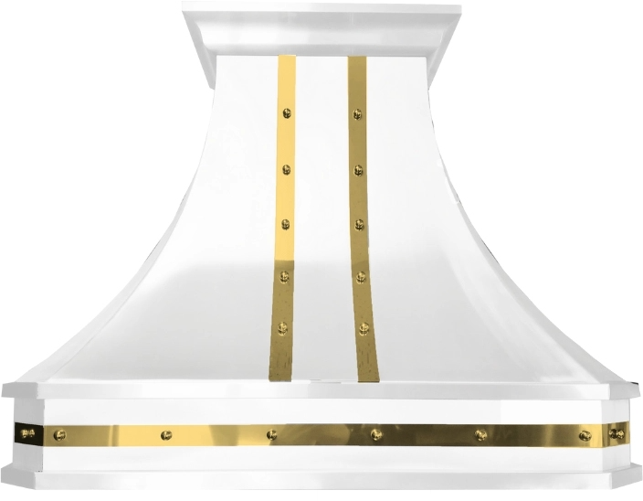 Stunning, hand-crafted decorative hoods with intricate metalwork. Fully customizable with options for width, power, and finishes. Choose from matte black, satin stainless steel, or designer white, with chrome or brass strappings. The custom finishes will tie all your accent pieces together completing an elegant luxury kitchen appliance,Read More