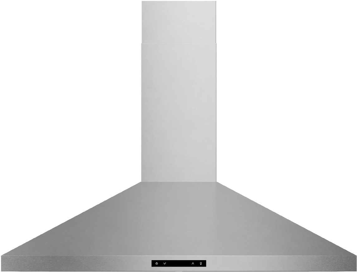 The stainless steel duct cover matches the linear styling of the THOR Kitchen 36 Inch Pyramid Range Hood and extends to accommodate 8 to 9 ft ceilings